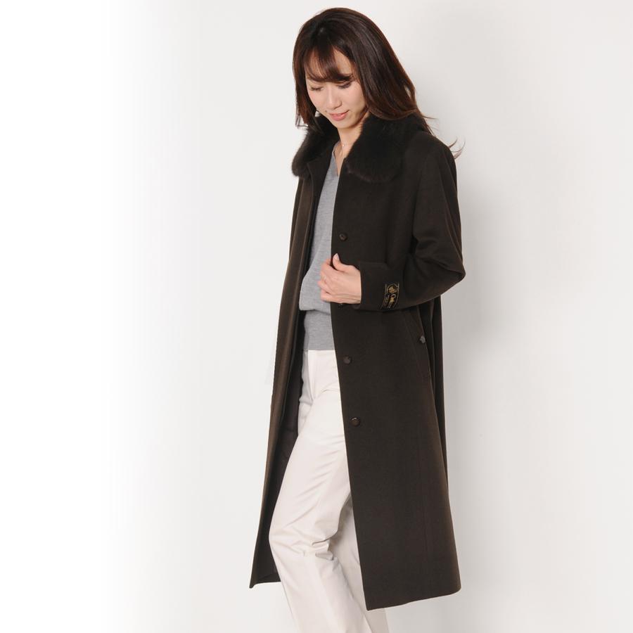 カシミヤコート 100 ステンカラー コート ロング丈 フォックスファー付き 着丈108cm レディース 秋冬 ダークブラウン 9号 11号 r ギフト Sankyo Shokai 三京商会 通販 Paypayモール